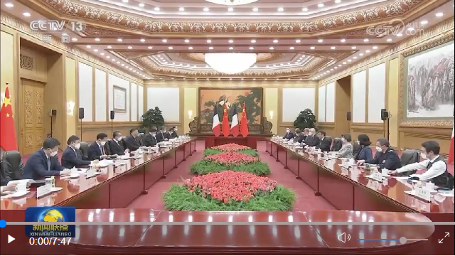 馬克龍表示,我對3年多前訪華情景記憶猶新,非常高興再次訪華,同習近平主席共同探討進一步提升法中全面戰(zhàn)略伙伴關系。我完全贊同習近平主席對法中關系的積極評價以及就發(fā)展雙邊關系提出的重要建議。明年法中將共同慶祝建交60周年。60年來,法中關系保持了穩(wěn)定健康發(fā)展。雖然法中兩國發(fā)展模式不同,但雙方相互尊重,坦誠交流,各領域合作實現(xiàn)了互利互惠,同時在合作應對當今世界面臨的全球性挑戰(zhàn)方面取得重要進展。法方尊重并奉行一個中國政策。我此次率龐大代表團訪華,就是希望同中方加強合作,促進人文交流。法方祝賀中方成功舉辦昆明-蒙特利爾《生物多樣性公約》第十五次締約方大會,希望繼續(xù)在氣候變化、糧食安全等問題上同中方密切溝通合作。中方將舉辦第三屆“一帶一路”國際合作高峰論壇,法方愿同中方就此開展合作。法方贊賞中方始終遵守聯(lián)合國憲章宗旨,為解決國際地區(qū)熱點問題發(fā)揮積極作用,期待同中方密切溝通協(xié)作,努力實現(xiàn)世界的持久和平與穩(wěn)定。