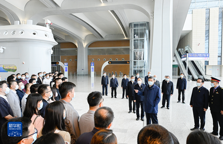 當(dāng)天上午,習(xí)近平乘高鐵前往雄安新區(qū),抵達(dá)后首先考察了雄安站的建設(shè)運行情況。雄安站是雄安新區(qū)開工建設(shè)的第一個重大基礎(chǔ)設(shè)施項目,具有標(biāo)志性意義。習(xí)近平先后察看站臺、候車大廳、站外廣場,了解雄安站建設(shè)運營和所在的昝崗片區(qū)規(guī)劃建設(shè)情況。習(xí)近平指出,雄安站是雄安新區(qū)的交匯車站,要進(jìn)一步完善聯(lián)通雄安站和雄安新區(qū)的交通“微細(xì)血管”,提升人流物流聚集和疏散的效率。要把昝崗片區(qū)建設(shè)成為高端高新產(chǎn)業(yè)集聚區(qū),讓各方來客一到雄安,就能感受到雄安新區(qū)撲面而來的現(xiàn)代化新氣象。