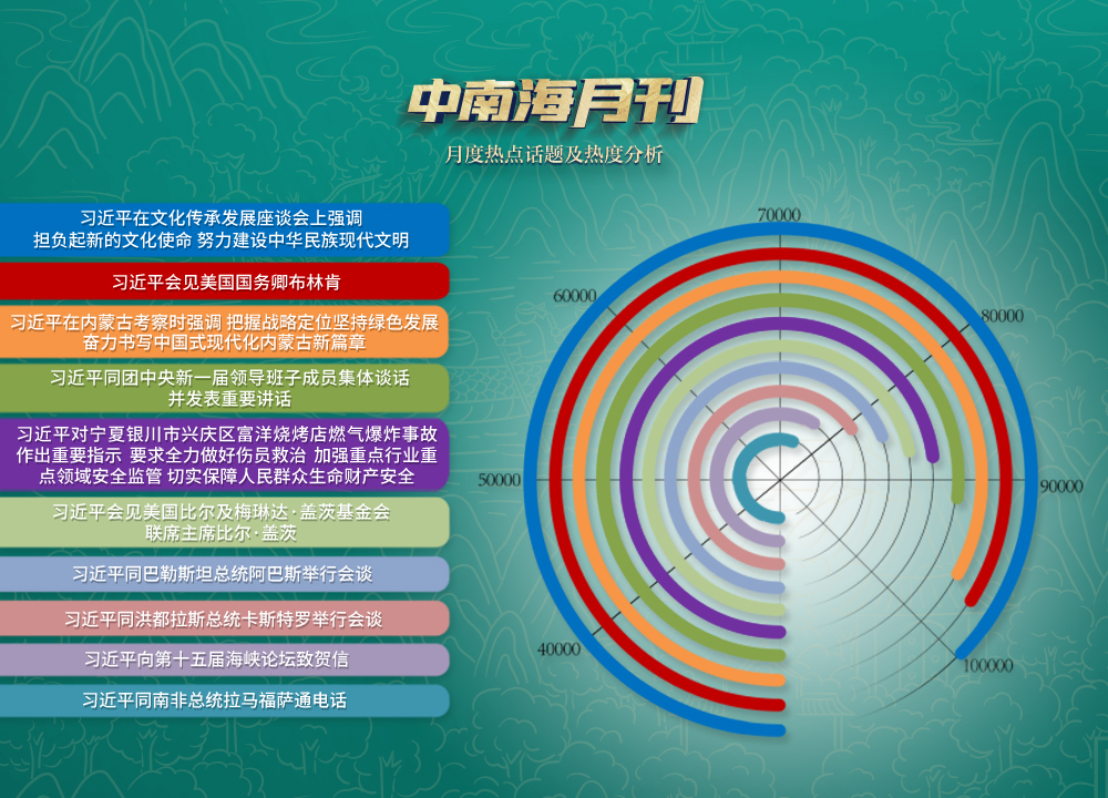 在央視網“智聞”系統(tǒng)提取分析的6月全網時政新聞熱點中,處處體現著“以古人之規(guī)矩,開自己之生面”的生動實踐。