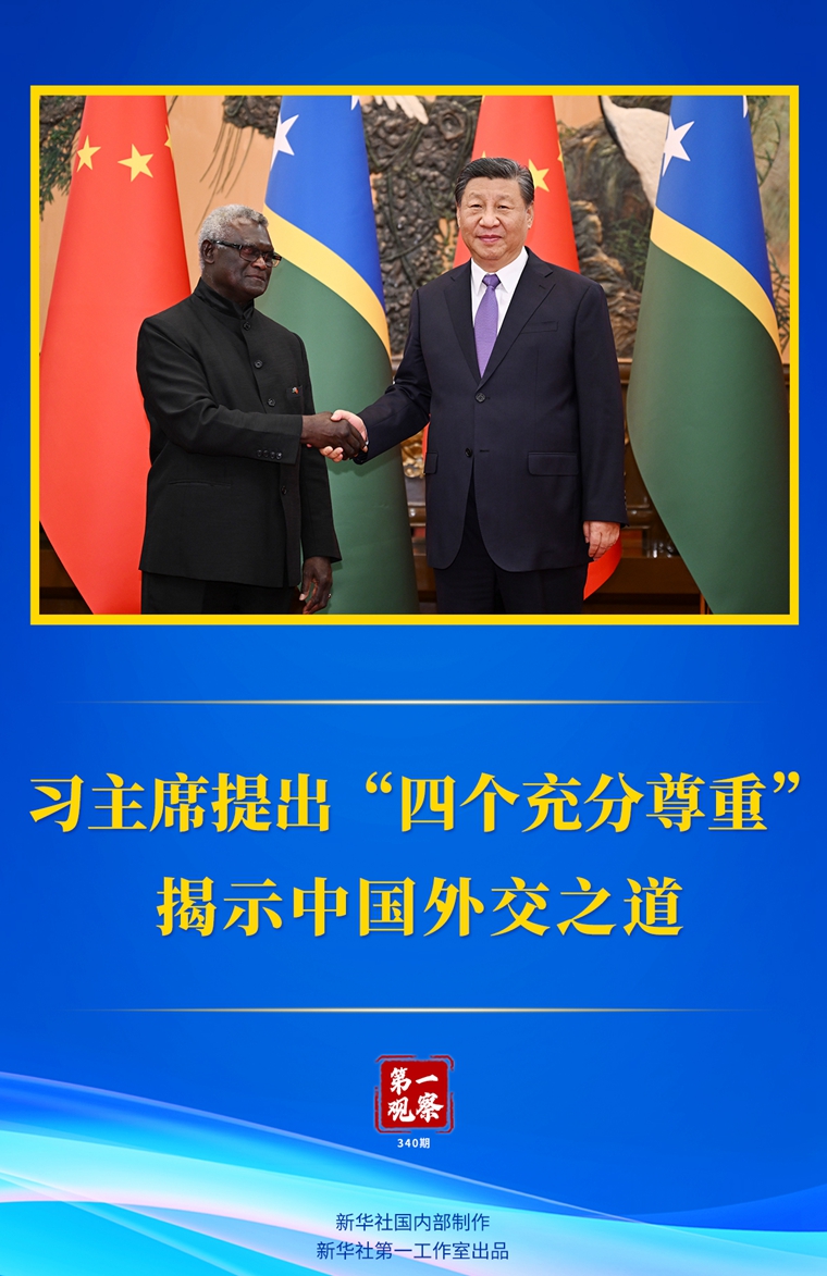 7月10日下午,國家主席習(xí)近平在人民大會堂會見來華進(jìn)行正式訪問的所羅門群島總理索加瓦雷。會見中,習(xí)近平主席指出,中國的太平洋島國政策秉持“四個充分尊重”——
