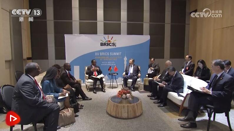 當(dāng)?shù)貢r(shí)間8月24日上午,國(guó)家主席習(xí)近平在約翰內(nèi)斯堡出席金磚國(guó)家領(lǐng)導(dǎo)人會(huì)晤期間會(huì)見(jiàn)馬拉維總統(tǒng)查克維拉。
