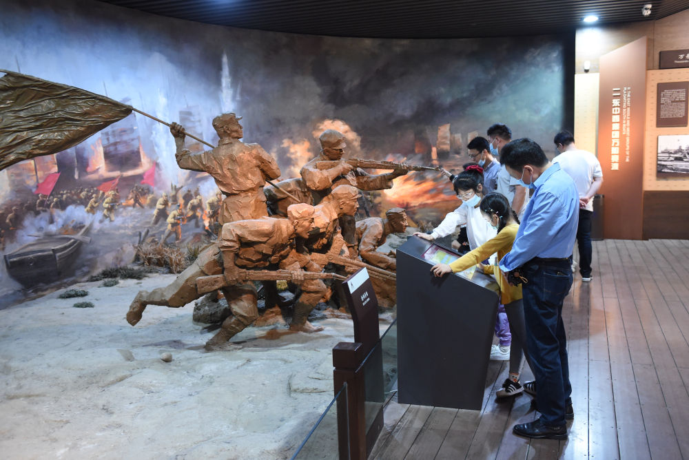 游客在位于安徽合肥的渡江戰(zhàn)役紀(jì)念館參觀(2021年5月3日攝)。新華社記者 周牧 攝