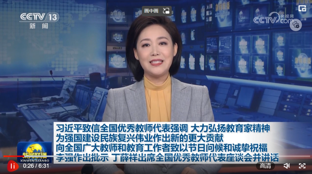 全國優(yōu)秀教師代表座談會(huì)9月9日在京召開。中共中央總書記、國家主席、中央軍委主席習(xí)近平致信與會(huì)教師代表,在第三十九個(gè)教師節(jié)到來之際,代表黨中央,向他們和全國廣大教師及教育工作者致以節(jié)日的問候和誠摯的祝福。