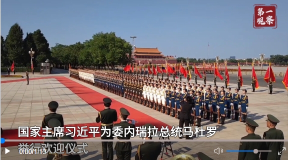“中方始終從戰(zhàn)略高度和長遠(yuǎn)角度看待發(fā)展同委內(nèi)瑞拉關(guān)系,堅(jiān)定支持委方維護(hù)國家主權(quán)、民族尊嚴(yán)、社會(huì)穩(wěn)定的努力,堅(jiān)定支持委方反對(duì)外部干涉的正義事業(yè)?!贝舜螘?huì)談,習(xí)近平主席再次強(qiáng)調(diào)。