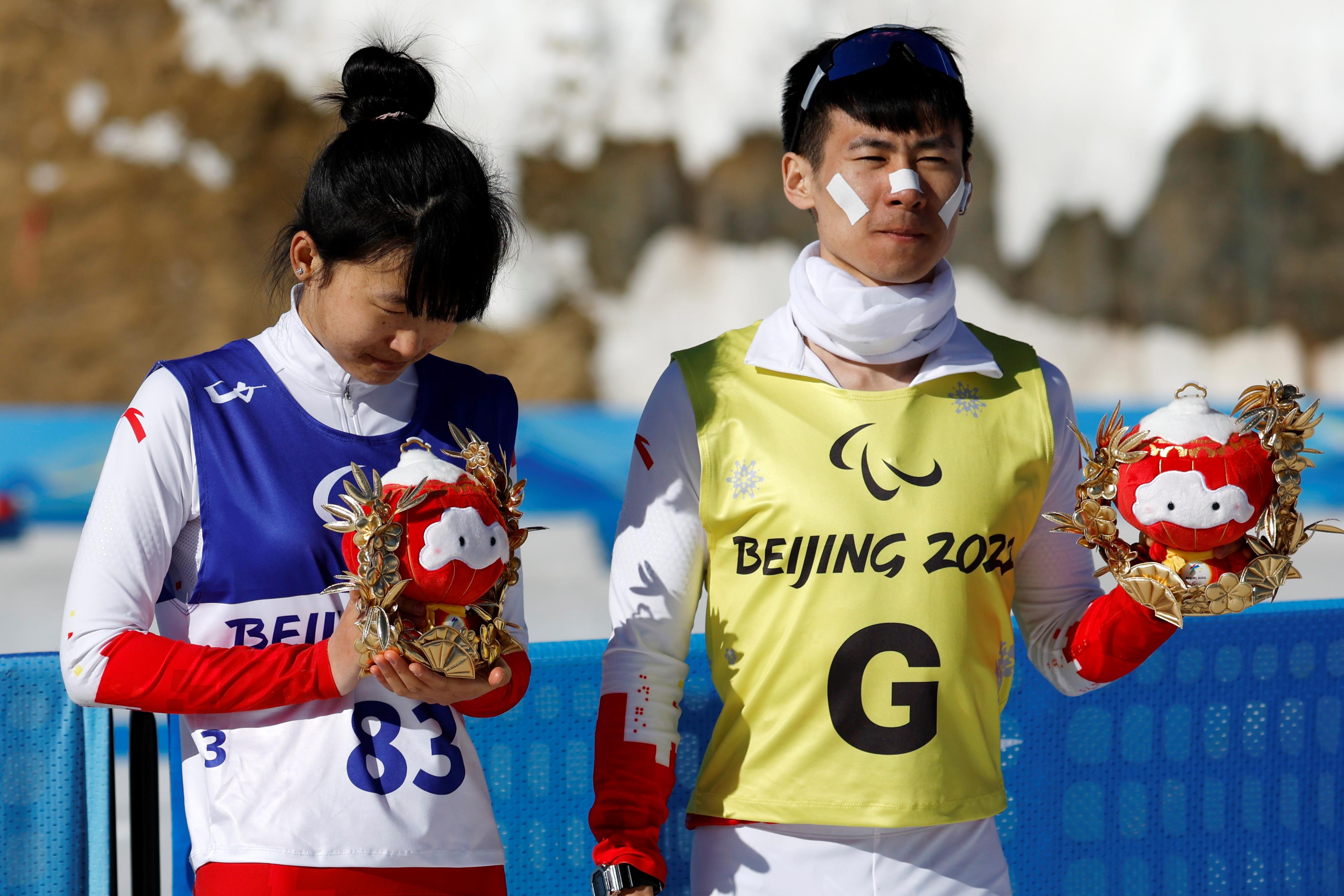△2022年3月8日,2022冬殘奧會殘奧冬季兩項女子中距離(視障)比賽中,中國選手王躍獲季軍。