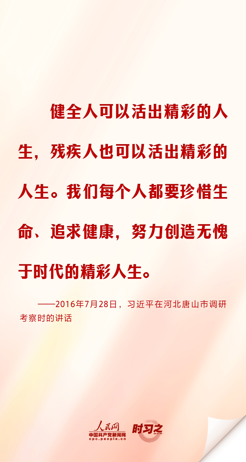 習(xí)近平總書記強(qiáng)調(diào),殘疾人是一個(gè)特殊困難的群體,需要格外關(guān)心、格外關(guān)注。他多次作出重要指示,推進(jìn)我國(guó)殘疾人事業(yè)不斷邁向高質(zhì)量發(fā)展,讓廣大殘疾人與全國(guó)人民一道共建共享更加幸福美好的生活。