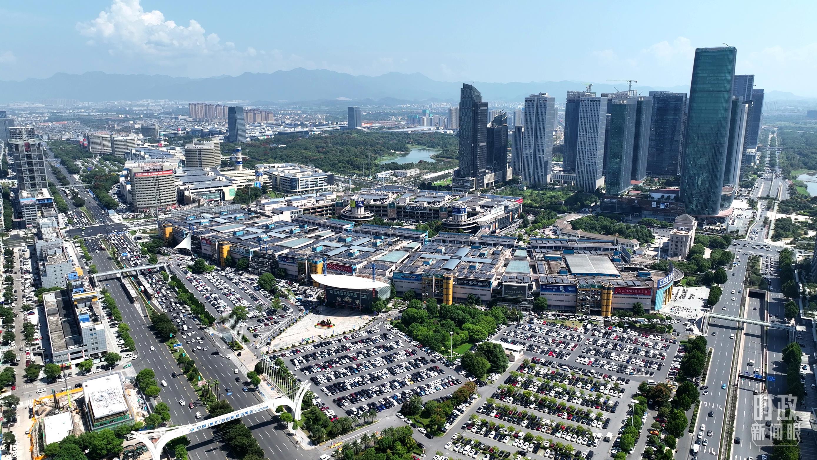 △義烏國(guó)際商貿(mào)城航拍。(總臺(tái)央視記者羅瀟拍攝)