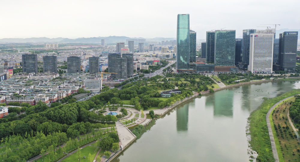 義烏國際商貿(mào)城與金融商務(wù)區(qū)。