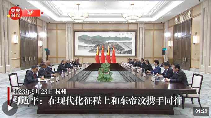 9月23日上午,國(guó)家主席習(xí)近平在杭州西湖國(guó)賓館會(huì)見來華出席第19屆亞洲運(yùn)動(dòng)會(huì)開幕式的東帝汶總理夏納納。