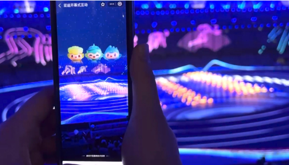開幕式現場的幾萬人更是可以通過手機AR互動,放飛許愿燈,召喚亞運吉祥物跳入大蓮花體育場,這也是世界上首次在大型活動現場中采用AR創(chuàng)意互動,通過數字技術讓現場觀眾成為開幕式現場演出的一部分,傳遞全民亞運的理念。