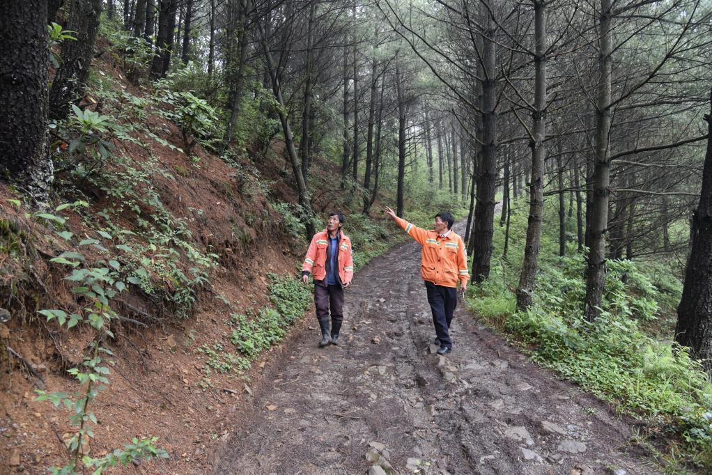 海雀村生態(tài)護林員馬正安(左)和海雀村林管員王光德(右)在日常巡山護林。新華社記者 李凡 攝