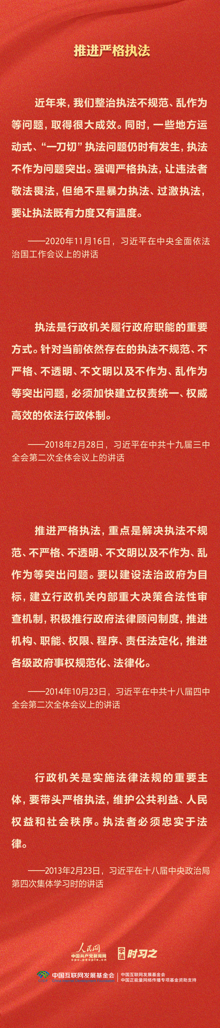 今年是貫徹落實(shí)黨的二十大精神的開(kāi)局之年。中共中央政治局決定從今年4月開(kāi)始,在全黨自上而下開(kāi)展學(xué)習(xí)貫徹習(xí)近平新時(shí)代中國(guó)特色社會(huì)主義思想主題教育。習(xí)近平法治思想是習(xí)近平新時(shí)代中國(guó)特色社會(huì)主義思想的重要組成部分,人民網(wǎng)·中國(guó)共產(chǎn)黨新聞網(wǎng)推出學(xué)法時(shí)習(xí)之·學(xué)習(xí)習(xí)近平法治思想系列策劃,本篇聚焦“堅(jiān)持全面推進(jìn)科學(xué)立法、嚴(yán)格執(zhí)法、公正司法、全民守法”。
