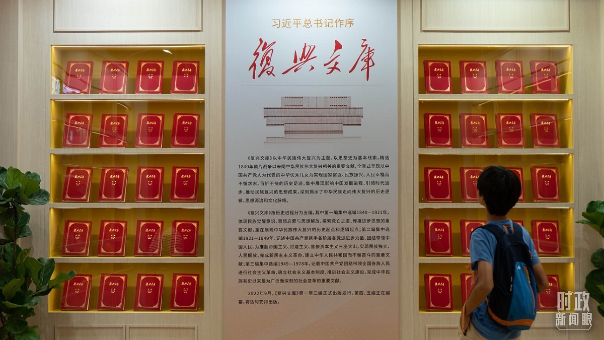 △2023年8月16日,2023上海書展開(kāi)幕,書展設(shè)置的“復(fù)興文庫(kù)”主題書籍展示區(qū)吸引讀者駐足查看。(圖/視覺(jué)中國(guó))