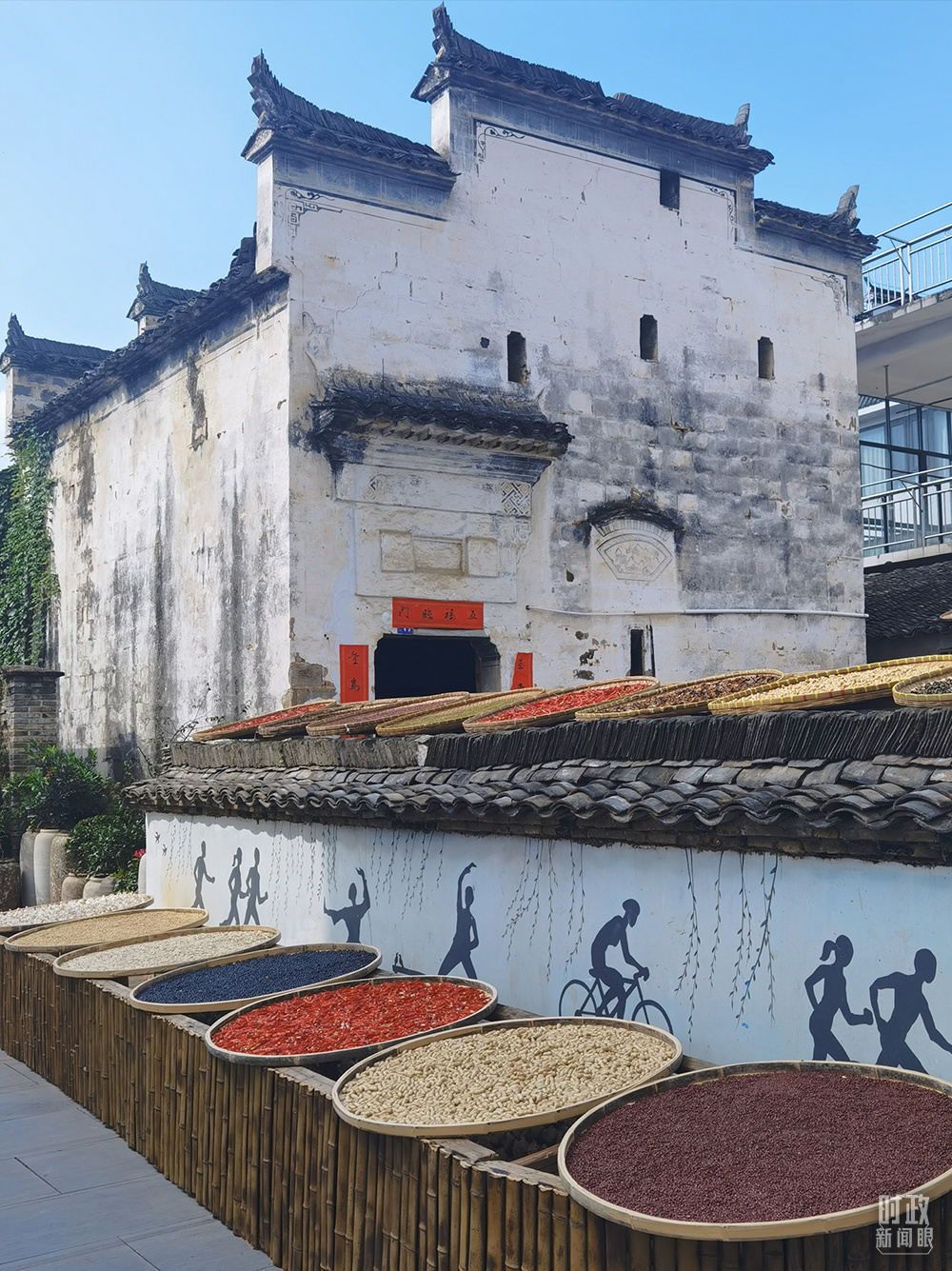 △婺源鄉(xiāng)村的曬秋農(nóng)俗。(總臺(tái)央視記者段德文拍攝)