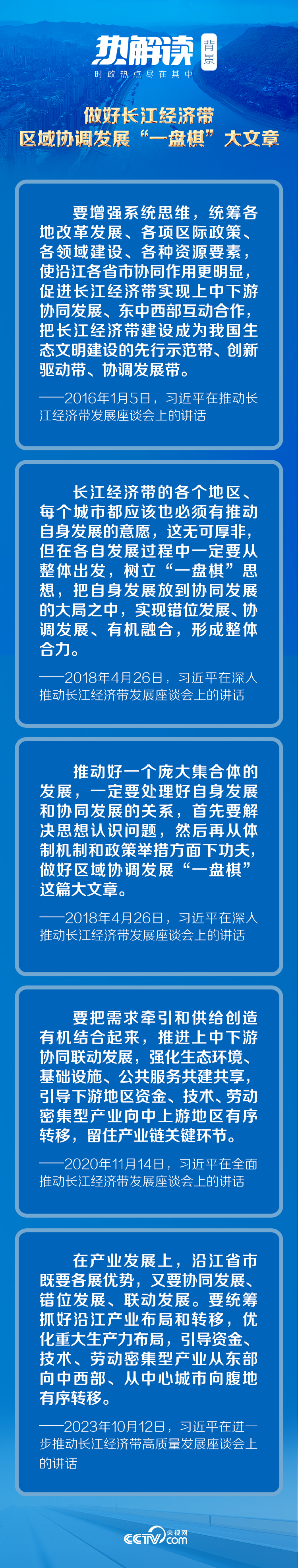 總書記表示,要堅(jiān)持把強(qiáng)化區(qū)域協(xié)同融通作為著力點(diǎn),并要求沿江省市增強(qiáng)區(qū)域交通互聯(lián)性、政策統(tǒng)一性、規(guī)則一致性、執(zhí)行協(xié)同性,穩(wěn)步推進(jìn)生態(tài)共同體和利益共同體建設(shè),促進(jìn)區(qū)域協(xié)調(diào)發(fā)展。