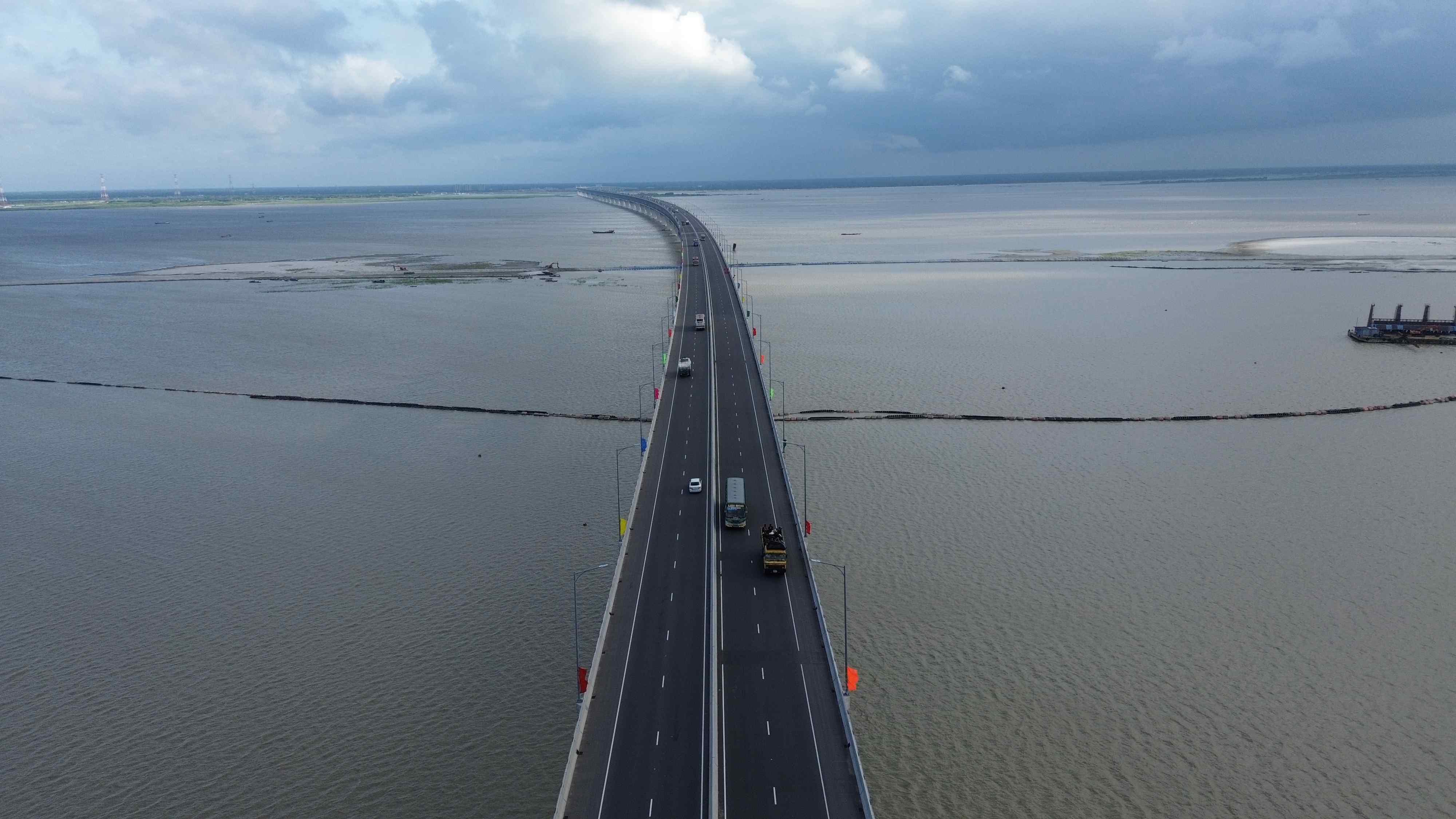 △2023年6月25日,位于孟加拉國首都達(dá)卡西南約40公里處的帕德瑪大橋。中企承建的孟加拉國最大橋梁項(xiàng)目——帕德瑪大橋,是連接中國及“泛亞鐵路”的重要通道之一。