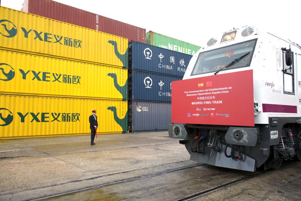 △2023年3月9日,以“中西建交紀(jì)念號(hào)”特別命名的“義新歐”中歐班列從馬德里鳴笛發(fā)車,與從義烏同時(shí)開出的列車雙向而行。