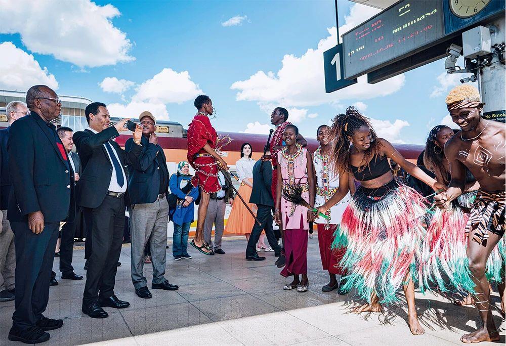 △2023年10月6日,多國駐肯使節(jié)在肯尼亞內(nèi)羅畢的蒙內(nèi)鐵路內(nèi)羅畢站觀看文藝演出。