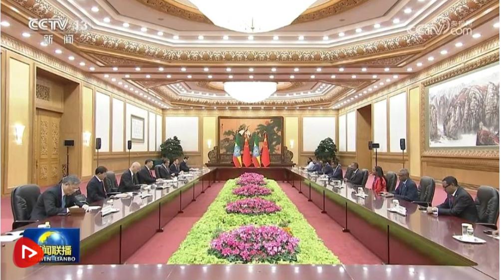 10月17日上午,國家主席習(xí)近平在人民大會(huì)堂會(huì)見來華出席第三屆“一帶一路”國際合作高峰論壇并進(jìn)行正式訪問的埃塞俄比亞總理阿比。