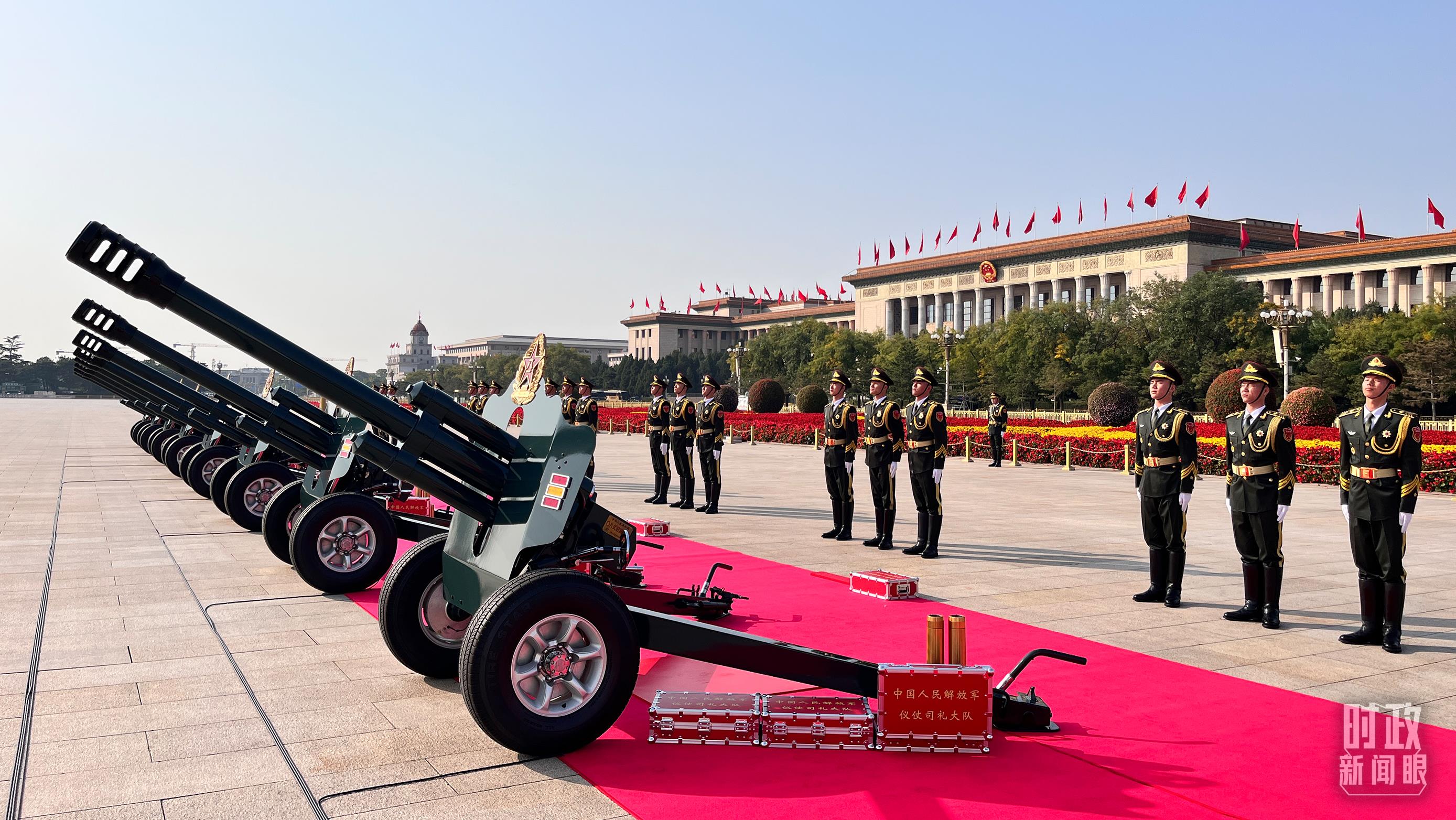 △習(xí)近平在人民大會(huì)堂北大廳為智利總統(tǒng)博里奇舉行歡迎儀式。這是天安門(mén)廣場(chǎng)禮炮鳴放準(zhǔn)備就緒。(總臺(tái)央視記者張垚拍攝)