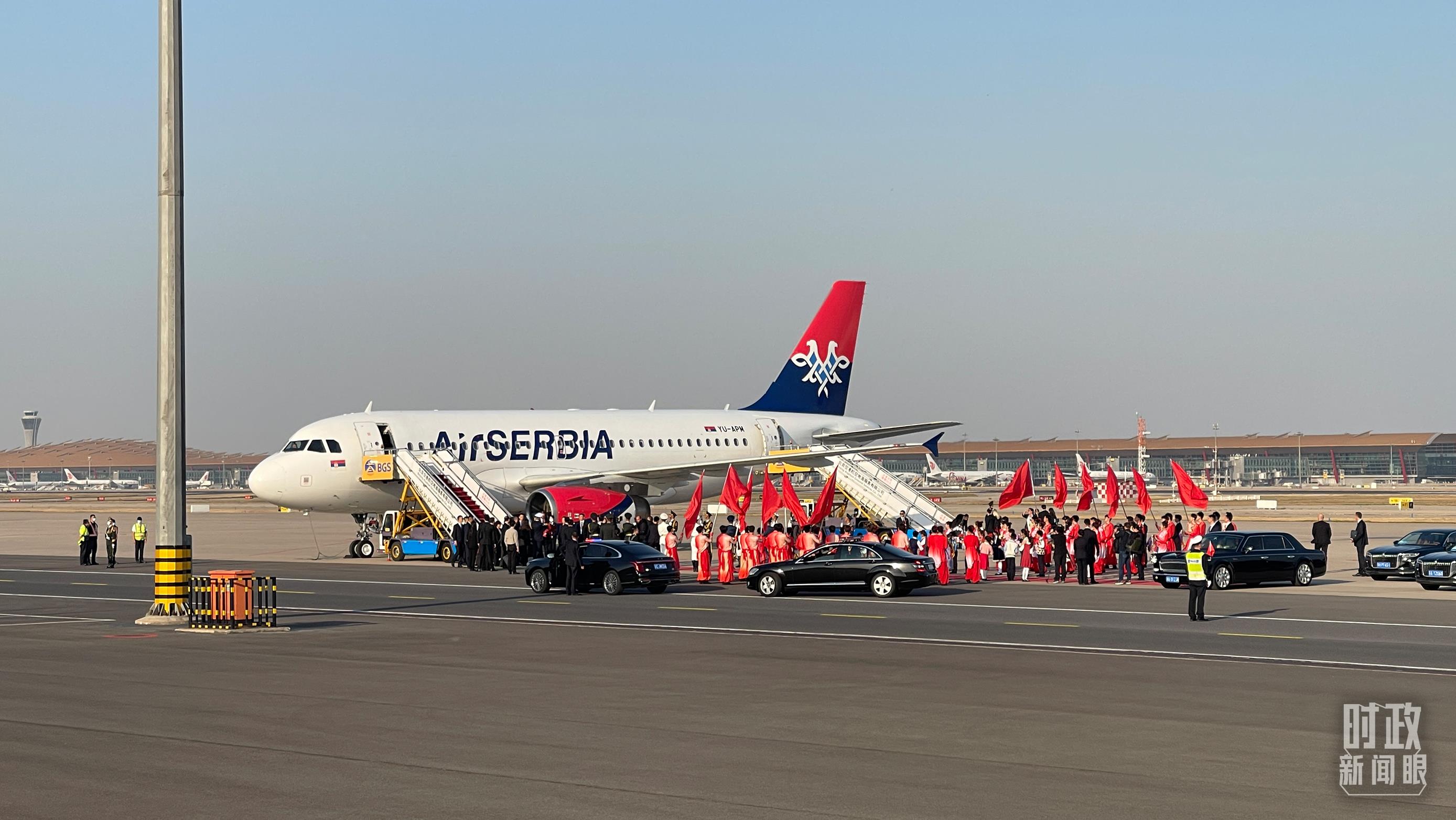 △16日下午,塞爾維亞總統(tǒng)武契奇乘坐的飛機(jī)抵達(dá)北京。(總臺(tái)央視記者周錕拍攝)