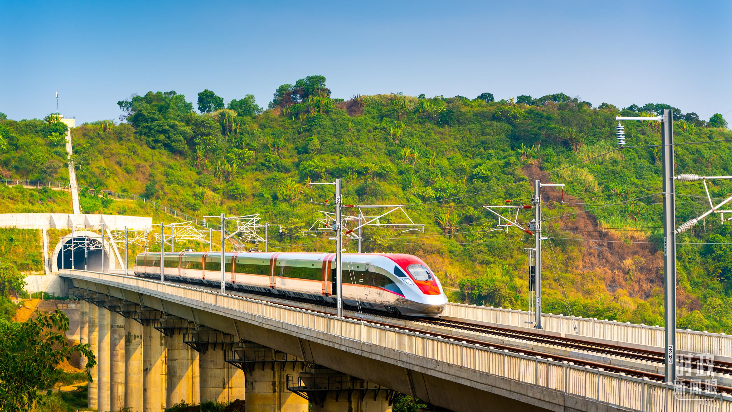 △動(dòng)車組在雅萬(wàn)高鐵線路上飛馳。(國(guó)鐵集團(tuán)供圖)