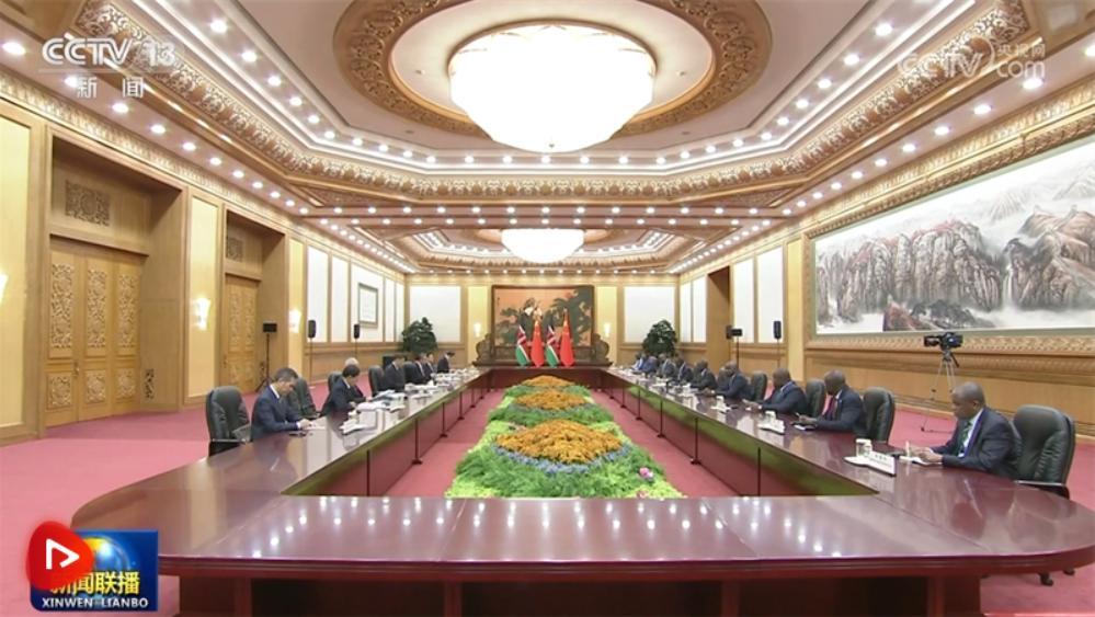 10月18日晚,國家主席習(xí)近平在人民大會堂會見來華出席第三屆“一帶一路”國際合作高峰論壇的肯尼亞總統(tǒng)魯托。
