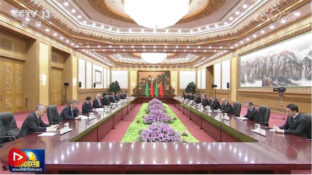 10月19日上午,國(guó)家主席習(xí)近平在人民大會(huì)堂會(huì)見(jiàn)來(lái)華出席第三屆“一帶一路”國(guó)際合作高峰論壇的土庫(kù)曼斯坦民族領(lǐng)袖、人民委員會(huì)主席別爾德穆哈梅多夫。