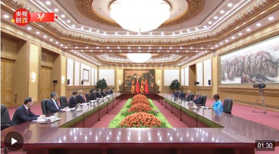 10月20日上午,國(guó)家主席習(xí)近平在人民大會(huì)堂會(huì)見(jiàn)來(lái)華出席第三屆“一帶一路”國(guó)際合作高峰論壇的斯里蘭卡總統(tǒng)維克拉馬辛哈。