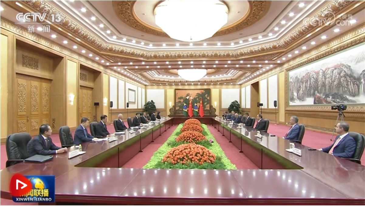 習(xí)近平指出,今年春天盧拉總統(tǒng)對(duì)中國(guó)進(jìn)行成功國(guó)事訪問(wèn),我同他舉行了富有成果的會(huì)晤,就引領(lǐng)開(kāi)辟新時(shí)代的中巴關(guān)系達(dá)成重要共識(shí)。中國(guó)和巴西分別是東西半球最大的發(fā)展中國(guó)家,是具有全球影響的新興大國(guó)。面對(duì)變亂交織的世界,中巴理應(yīng)堅(jiān)定相互支持、彼此呼應(yīng)?!耙粠б宦贰背h同巴西“再工業(yè)化”和新版“加速增長(zhǎng)計(jì)劃”高度契合,完全可以實(shí)現(xiàn)對(duì)接,助力各自現(xiàn)代化進(jìn)程。中方支持巴西明年主辦二十國(guó)集團(tuán)領(lǐng)導(dǎo)人峰會(huì)以及后年舉辦《聯(lián)合國(guó)氣候變化框架公約》締約方大會(huì),愿同巴方加強(qiáng)協(xié)調(diào)配合。