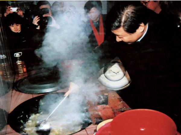 廚房的大鐵鍋里熱氣騰騰,香味氤氳,向四周擴(kuò)散開來。時(shí)任浙江省委書記的習(xí)近平,一邊嫻熟地炒著包心菜一邊和大家拉家常,氣氛熱烈溫暖。