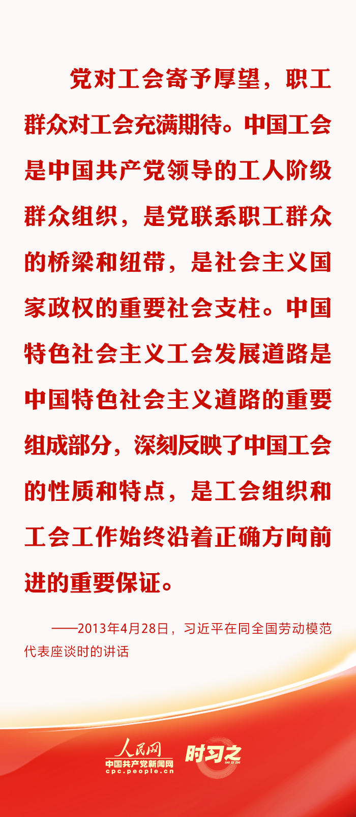 來源:人民日報、《習近平關于工人階級和工會工作論述摘編》