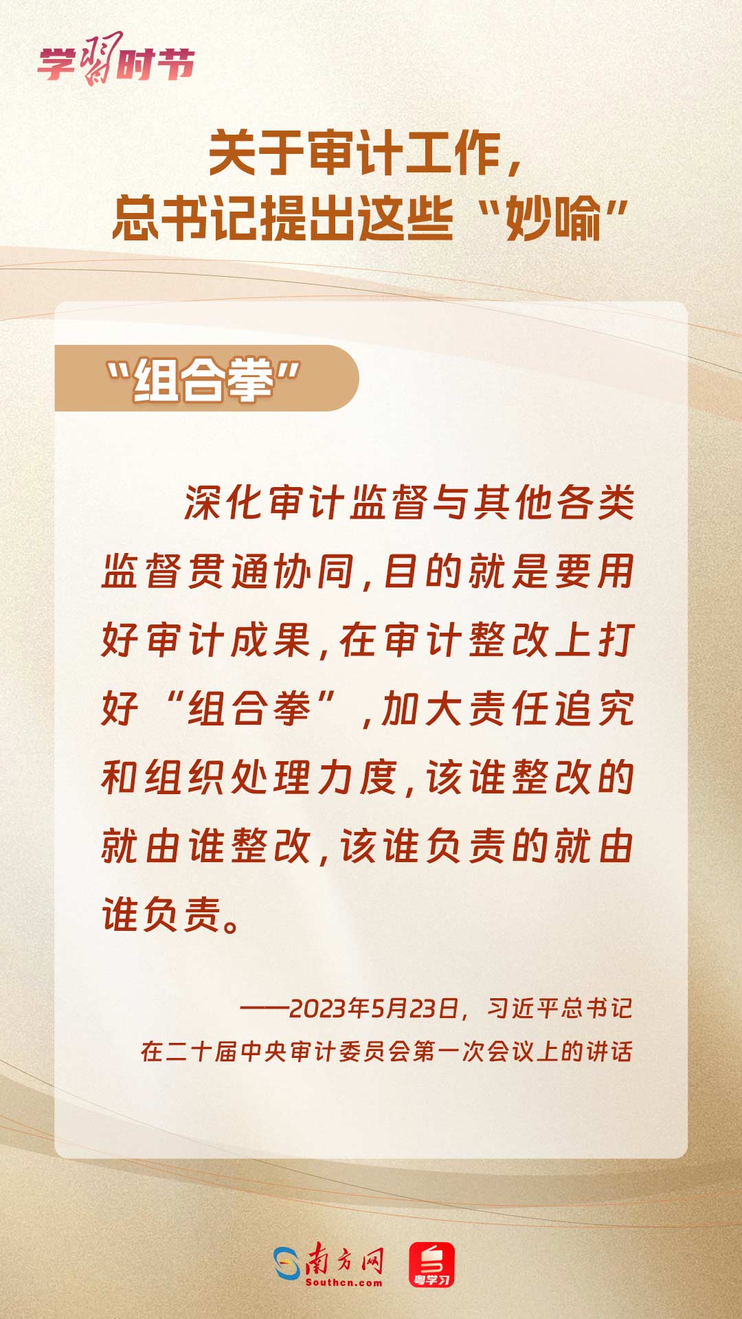 11月1日出版的《求是》雜志刊登了習近平總書記在二十屆中央審計委員會第一次會議上的講話全文。總書記在重要講話中“妙喻”審計工作,讓我們一同學習。