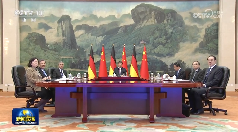 習近平強調(diào),當前國際形勢正在發(fā)生很大變化,地緣沖突加劇,經(jīng)濟復蘇乏力,冷戰(zhàn)思維回潮。中國和德國都是負責任的大國,不僅要發(fā)展好雙邊關系、做合作共贏的表率,更要捍衛(wèi)國際秩序和多邊主義,攜手應對全球性挑戰(zhàn)。中歐關系關乎世界格局穩(wěn)定和亞歐大陸繁榮,值得雙方全力維護好、發(fā)展好。中國將歐洲視為全面戰(zhàn)略伙伴和多極化中的重要一極。希望德國推動歐盟秉持市場化和公平原則,同中方一道,維護公平市場競爭和自由貿(mào)易,維護全球產(chǎn)業(yè)鏈供應鏈穩(wěn)定。
