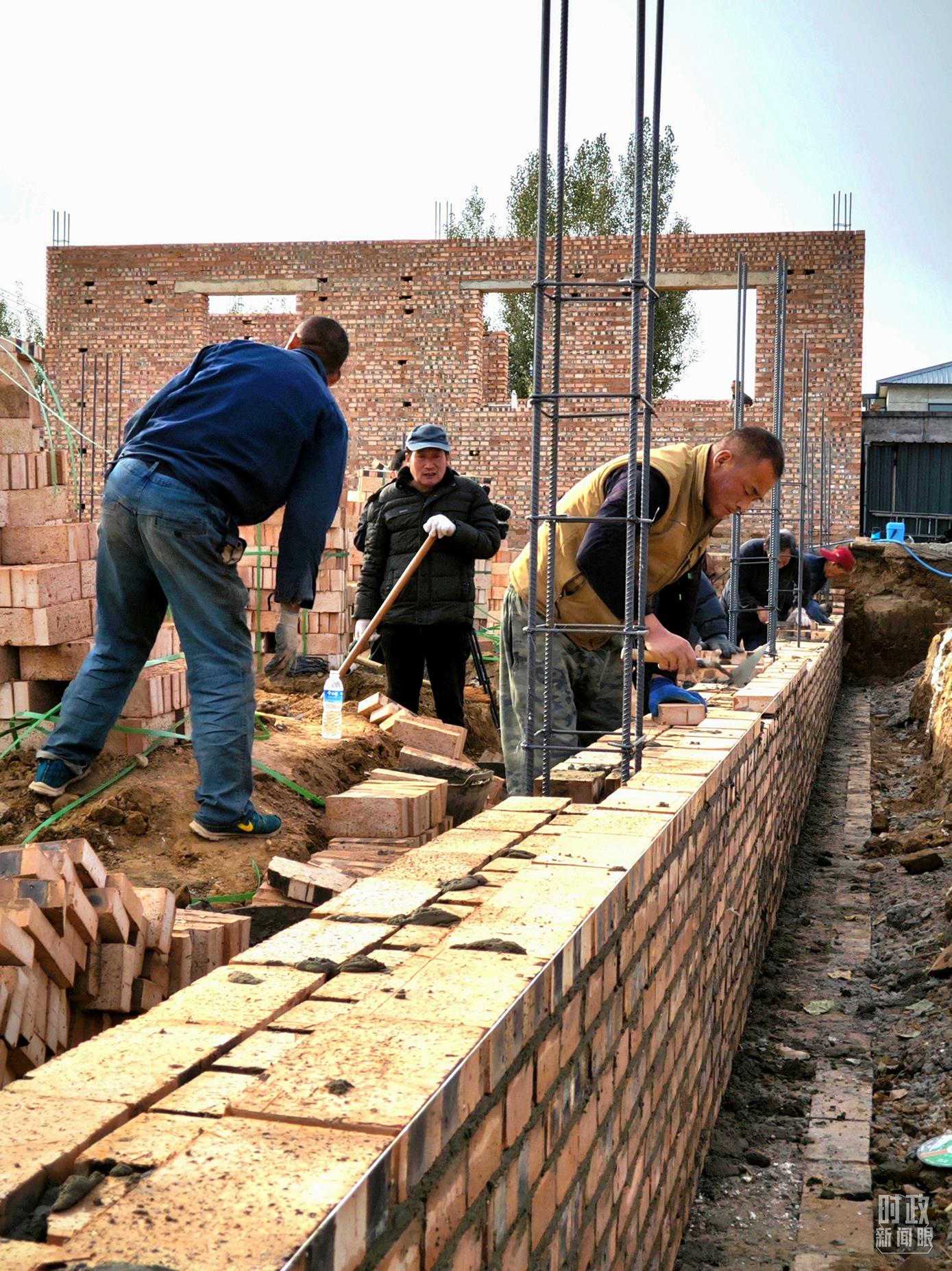 △ 刁窩鎮(zhèn)萬全莊村村民正在重建房屋。(總臺央視記者李輝拍攝)