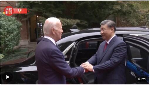 當?shù)貢r間11月15日下午,中美元首會晤結束后,拜登總統(tǒng)將習近平主席送至上車處,相互道別。