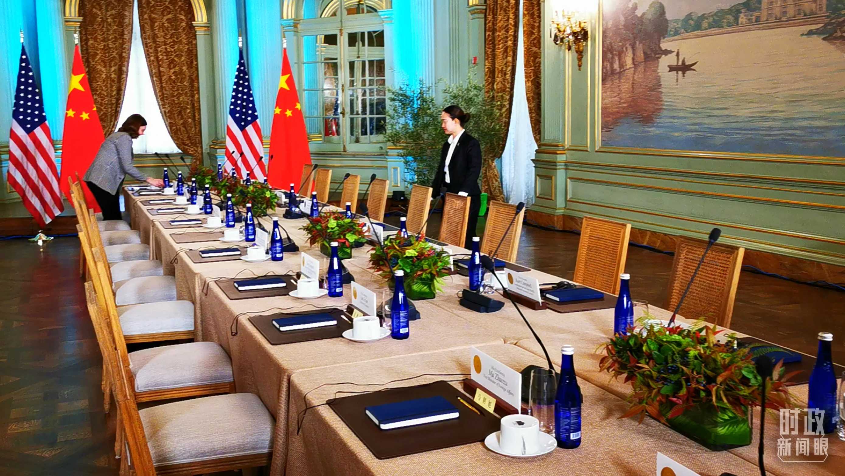 △會(huì)晤開始前的現(xiàn)場(chǎng)。(總臺(tái)央視記者李錚拍攝)
