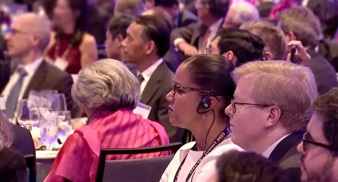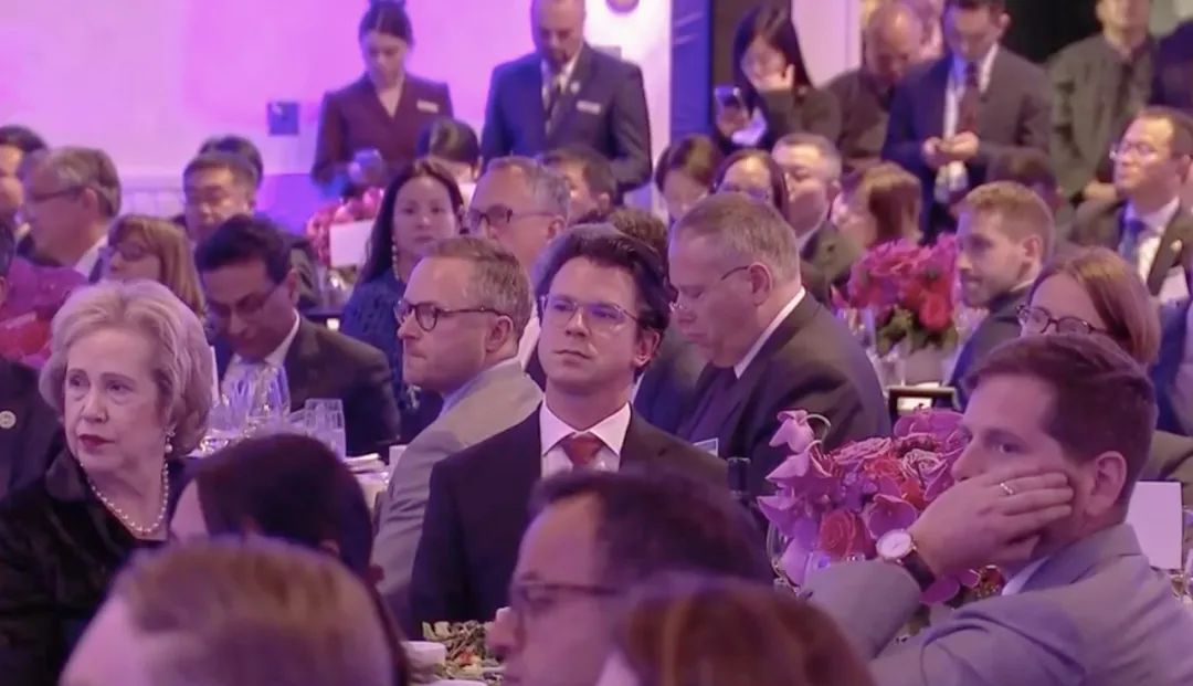△當(dāng)?shù)貢r(shí)間11月15日晚,習(xí)近平主席在美國友好團(tuán)體聯(lián)合歡迎宴會(huì)上發(fā)表演講。圖為參加宴會(huì)的人士認(rèn)真聆聽演講。