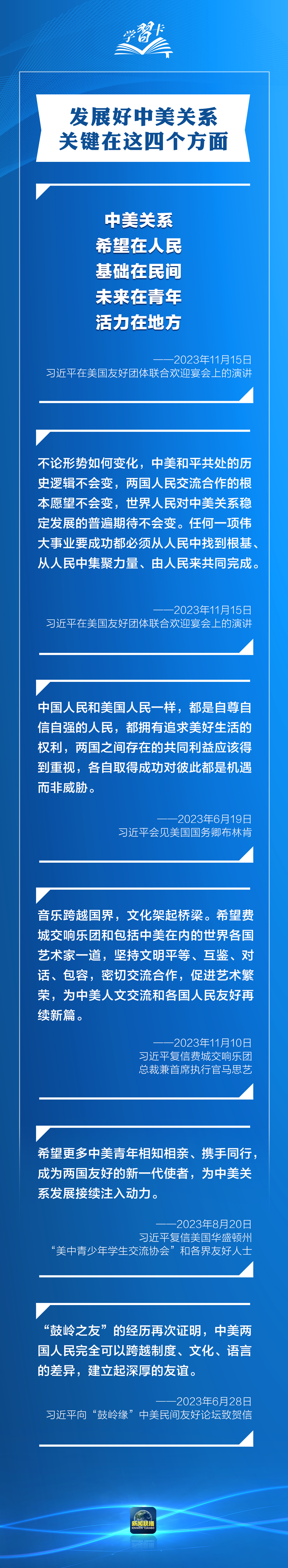 習(xí)近平多次指出,作為兩個世界大國,中美能否確立正確相處之道,攸關(guān)世界和平發(fā)展和人類前途命運(yùn)。發(fā)展中美關(guān)系,習(xí)主席強(qiáng)調(diào)三點(diǎn)原則、四個方面、五根支柱,一起學(xué)習(xí)→