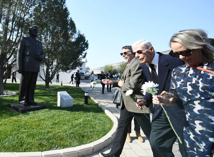 10月30日,在北京,飛虎隊(duì)老兵哈里·莫耶(中)向陳納德將軍雕像獻(xiàn)花。
