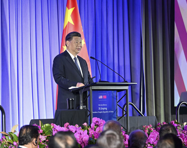 當(dāng)?shù)貢r間11月15日晚,國家主席習(xí)近平在美國舊金山出席美國友好團(tuán)體聯(lián)合舉行的歡迎宴會。這是習(xí)近平發(fā)表重要演講。