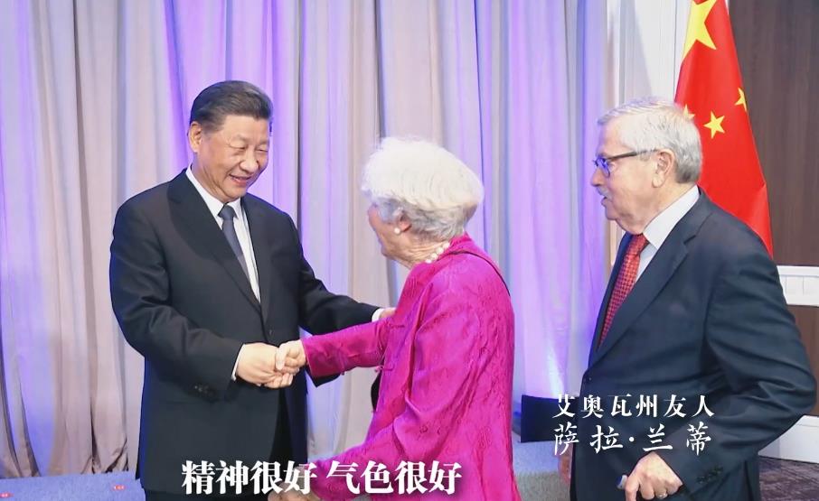 △當(dāng)?shù)貢r間11月15日晚,習(xí)近平主席在美國舊金山親切會見艾奧瓦州友人薩拉·蘭蒂。
