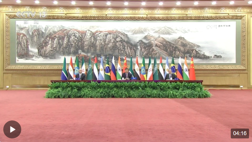 習(xí)近平強(qiáng)調(diào),金磚合作機(jī)制是新興市場國家和發(fā)展中國家加強(qiáng)團(tuán)結(jié)合作、維護(hù)共同利益的重要平臺(tái)。今天,我們就巴以問題協(xié)調(diào)立場、采取行動(dòng),為擴(kuò)員后的“大金磚合作”開了個(gè)好頭。中方愿同其他成員一道,開創(chuàng)金磚合作新時(shí)代。