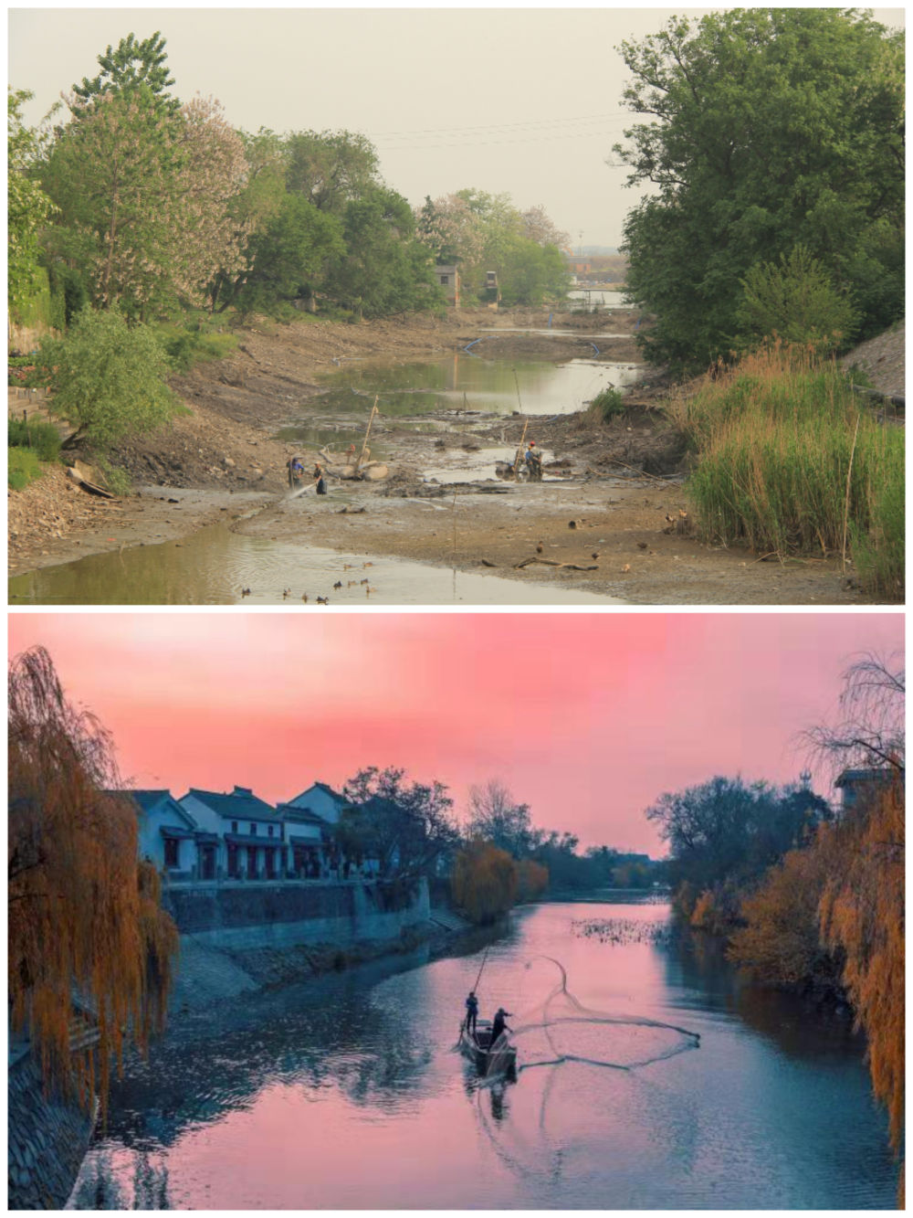 江蘇省揚(yáng)州市江都區(qū)明清運(yùn)河故道整治前后。(上圖:2012年;下圖:2020年)(孫友定 攝)
