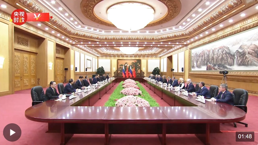 習(xí)近平指出,多年來,不論是在政府、政黨還是議會工作,你都積極致力于推動中俄關(guān)系和雙方各領(lǐng)域合作,為深化兩國傳統(tǒng)友誼作出了積極貢獻。上個月,我同普京總統(tǒng)在第三屆“一帶一路”國際合作高峰論壇期間舉行了友好會晤,共同對中俄關(guān)系和兩國全方位合作作出新的規(guī)劃和部署。明年是中俄建交75周年,中方愿同俄方一道,不斷深化永久睦鄰友好、全面戰(zhàn)略協(xié)作、互利合作共贏的雙邊關(guān)系。