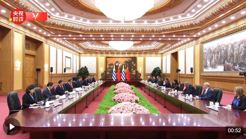 11月22日下午,國家主席習(xí)近平在人民大會堂同來華進行國事訪問的烏拉圭總統(tǒng)拉卡列舉行會談。