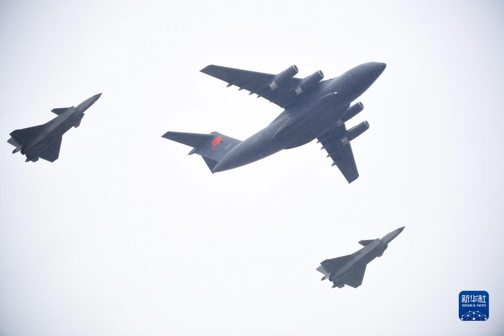 11月23日,空軍兩架殲-20飛機為護(hù)送烈士遺骸回國的運-20專機護(hù)航。新華社記者 潘昱龍 攝