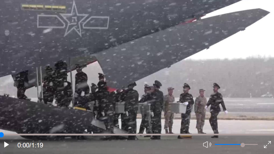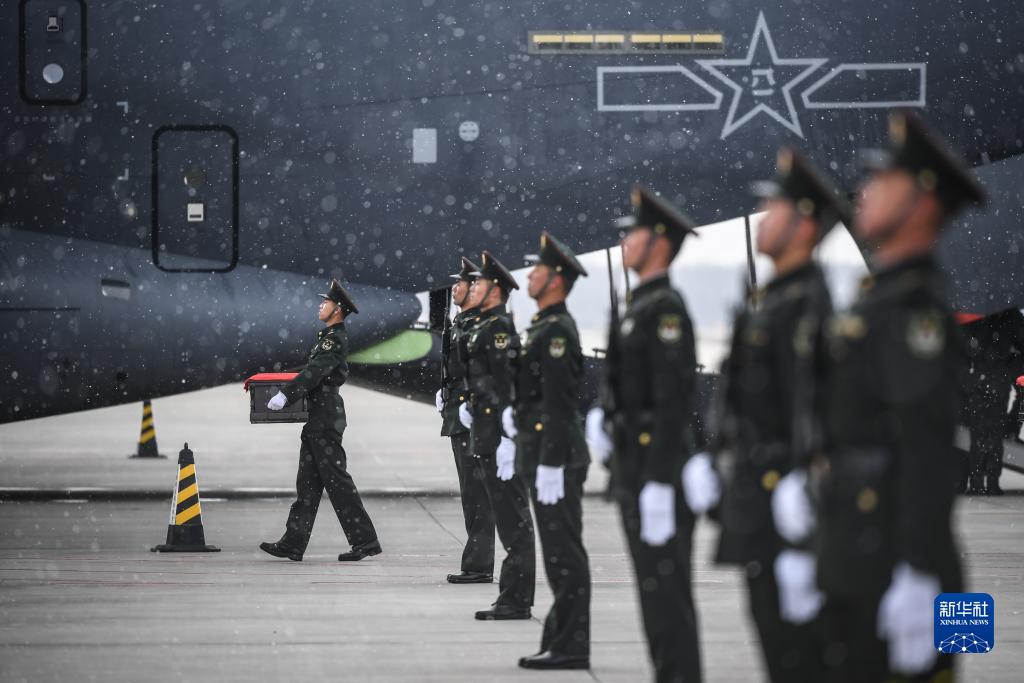 11月23日11時32分許,一架搭載著25位志愿軍烈士遺骸的中國空軍運-20運輸機降落在沈陽桃仙國際機場。第十批在韓中國人民志愿軍烈士遺骸回到祖國懷抱。