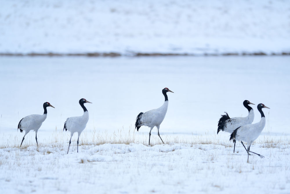 位于青海省的三江源國家公園黃河源園區(qū)內的黑頸鶴(2021年10月21日攝)。