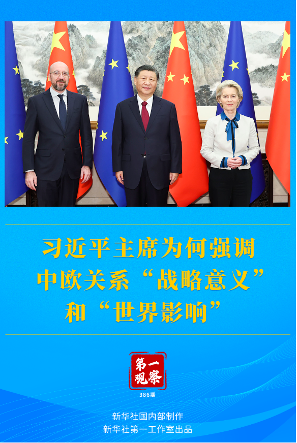 習(xí)近平主席將中歐視為世界兩大力量、兩大市場(chǎng)、兩大文明。此次會(huì)見中,習(xí)近平主席用“推動(dòng)多極化的兩大力量”“支持全球化的兩大市場(chǎng)”“倡導(dǎo)多樣性的兩大文明”對(duì)此作出進(jìn)一步闡釋。